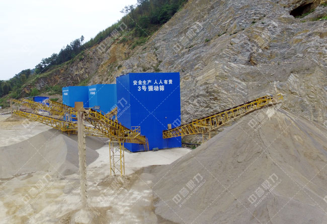 設備配置:YKR3073振動篩1臺,HPY400圓錐破碎機2臺,PL100S立軸破2臺,3YKR2460振動篩2臺,3YKR2475振動篩2臺,F(xiàn)C1500洗砂機2臺,系統(tǒng)集中控制系統(tǒng)1套