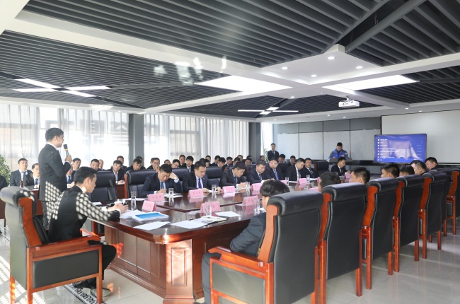 中譽鼎力總經(jīng)理張治民、中譽鼎力裝備設(shè)計有限公司總經(jīng)理馮濤、鼎力礦山設(shè)備公司副中譽鼎力裝備設(shè)計有限公司副總經(jīng)理兼大客戶項目部總經(jīng)理原文秋、中譽鼎力裝備設(shè)計有限公司EPC項目部總經(jīng)理張永臣,各服務(wù)總經(jīng)理及銷售人員近百人參加會議。