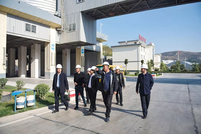 隨后,考察團來到中譽鼎力智能裝備有限公司,先后參觀了中譽鼎力的循環(huán)建材產(chǎn)業(yè)園項目沙盤和智能化一體生產(chǎn)車間。
