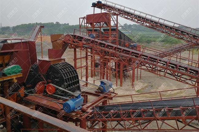 具體生產(chǎn)流程是這樣的,大塊石頭由給料機(jī)均勻地送進(jìn)粗碎機(jī)進(jìn)行初步破碎;產(chǎn)成的粗料由皮帶輸送機(jī)輸送至細(xì)碎進(jìn)行進(jìn)一步破碎整形,細(xì)碎后的石料進(jìn)振動篩篩分出不同規(guī)格的石料,不滿足粒度要求的石子返料進(jìn)細(xì)碎機(jī)再次破碎。